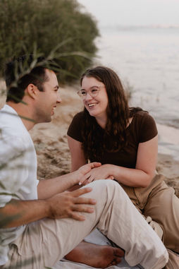 No sooner said than done. A short time later, we were standing together with our feet in the sand, the Elbe murmuring softly, the evening sun low in the sky - and the two of them were still beaming with the happiness of the past few days. It was one of those evenings that feel effortless. Peaceful, full of joy, and filled with their first thoughts about how they envisioned their wedding.